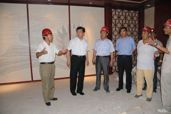 7月16日上午,市委書記許立全在市委副書記王獻(xiàn)玲、副市長夏芳晨、王樹華及市直有關(guān)部門負(fù)責(zé)同志陪同下到會展中心視察。集團(tuán)公司董事長徐鵬強(qiáng)全程陪同許立全視察。 許立全在會議中心西側(cè)下車,查看了展覽中心和會議中心外裝情況、廣場和園林綠化情況,隨后登上會議中心二層察看了內(nèi)裝并重點察看了千人宴會廳的內(nèi)裝情況,對會展中心的接待能力進(jìn)行了了解。許立全聽取了市建設(shè)局副局長張文在現(xiàn)場關(guān)于工程建設(shè)基本情況的匯報,對工程建設(shè)情況表示了滿意。